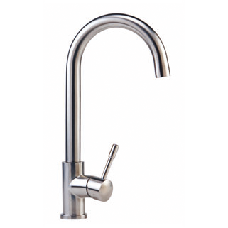 Описание: Смеситель для кухни с изогнутой трубкой, нержавеющая сталь. Запасные части и комплектующие: - картридж — 100053 - гибкая подводка — 100102